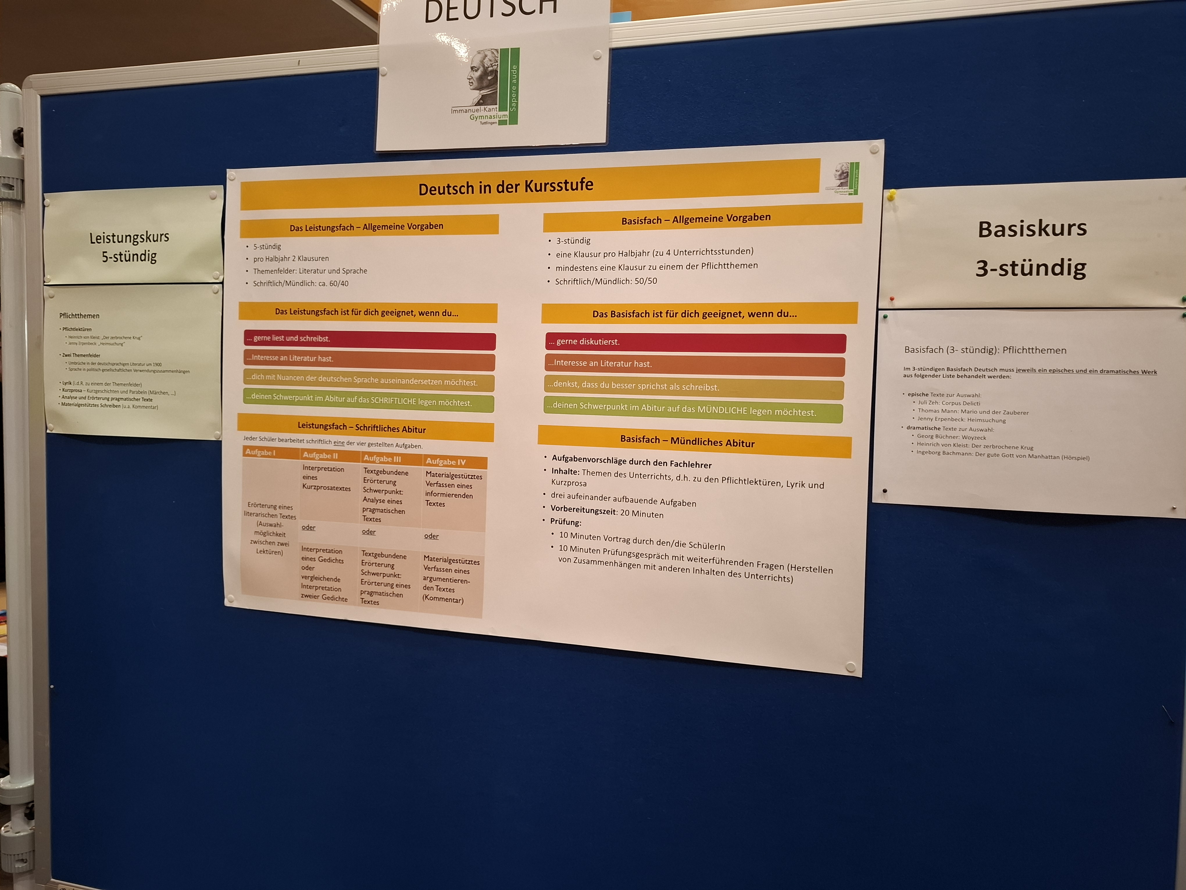 Ende Januar fand in der Pausenhalle des IKG für zwei Schulstunden die ABI-Börse für alle Schülerinnen und Schüler der Jahrgangsstufe 10 statt. Ziel der Veranstaltung war es, die Zehntklässlerinnen und Zehntklässler frühzeitig und praxisnah über die Kursstufe zu informieren und sie bei der anstehenden Kursstufenwahl zu unterstützen. Dabei erhielten sie insbesondere Orientierungshilfen zur Entscheidung, welche Fächer sie als Leistungsfächer (fünfstündig) und welche sie als Basisfächer belegen möchten.